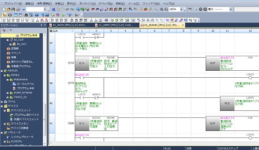 09月30日(火) .NET Framework の修復 よっしゃー、4位浮上!! ヾ(。゜▽゜)ノ ・・・ ふう 里崎も引退か・・・。 .NET Framework 修復に関する覚書。 1.「 ファイル名を指定して実行 」 で 「 Installer 」 を入力。 2.開いたウィンドウのタブに 「 コメント 」 を出す ( タブ欄右クリックで呼び出せる ) 3.Framework ファイルを見つけて右クリック。「 修復 」 をクリック。 ![]() アプリのインストール時に 「 Framework構成エラー 」 が出た時にこれでうまくいく場合も、まれにあります。 急に色々とたてこんできて、立ちくらみしてます。ではまた。 09月25日(木) CS消滅 終わった ・・・・・・ ( ̄д ̄) ではまた ・・・ 09月24日(水) 回路モニタに関する覚書 よっしゃー、5位浮上!! ヽ( ゚ ∀゚ )ノ ・・・ あれ? GOTで回路モニタする時の覚書。 MELSECの場合、シーケンサCPU本体メモリにコメント書き込むとやったら容量食うので、GOTの回路モニタで コメント表示をさせる場合、タッチパネルにカード入れてカードから読み出す場合が多いです ( その方がアクセスも速い )。 手順としては、GT1000シリーズの場合、カード内に 「 CIRCMNT 」 というフォルダを作って、その中にコメントファイルを入れます。 コメントファイルは、GX Developer のプログラムフォルダの中にひっそりと存在している 「 .wcd 」 という拡張子のファイルです。 それはいいのですが、ではシーケンサプログラムをGX Works2で作った場合はどうするのか。 どうしようもありません。 ( ;´Д`) この場合は、Works で作ったプロジェクトを一度Developer形式で保存して、そこからコメントファイルを 取り出します。 もしくは、パソコンにカードを入れて、「 オンライン 」 → 「 PC書込 」 から 「 ICカード書込 」 でカードにダウンロードし、そこにできた 「 .qcd 」 というコメントファイルの拡張子を 「 .wcd 」 に変更してから、前記フォルダ内に放り込みます。 どんだけどーん!! ![]() なお、タッチパネルが2000シリーズの場合はまた手順が違います。ふう。 ではまた。 09月21日(日) 許すべきか許さざるべきか CSどころか、いつの間にか最下位に ・・・・・・ (;゚ Д゚) ちょっと忙しいです。 所変われば品変わる。たこ焼きだって、買うとこによって味違う。 ラダーも。 ![]() この、(4) の接続方法を。許しているメーカーと許さないメーカがある。 他にも、「 コイルの後ろに接点 」 とか、 「 母線から直接コイル 」 とか色々あるよね。 個人的はだけど、ラダーは基本的にリレーシーケンスの置き換えなんだから、接続線のつなぎ方は 何でもあり、バックドロップもあり であるべきだと思う。だって、ハードリレーシーケンスなら、つなごうと思えばどんなふうにでもつなげられるわけじゃん? 変な動きするかもしれないし、時には何やら燃えるかもしれないにしても、フリーダムって素晴らしい。 ま、異論は認める。 09月15日(月) 照合エラー 4食連続カレー。 ( ̄□ ̄) なんでこんなことに・・・。つか、朝からカレー食うな。 で、KVでさ、書き込んだばかりのプログラムを照合かけると、エラーが出る。 ![]() なんでかな、と思ったら、使ってないマクロがあって、そいつが照合エラーに引っかかるんだ。 要するに、インスタンス化して実プログラムとして書き込まれていないということなんだろうけど、だったらエラー扱いにして ほしくはないなあ。赤いのあると、気分悪いじゃん。 KVは扱いやすいし色んな点でよくできてると思うけど、IEC には完全に背を向けてる感があるよね。 そういう戦略なのかもしれないし、1社くらいそんなベンダーがあってもいいとも思うけど、実のところどうなんだろう。 09月10日(水) 金曜まで ![]() 「 ぶってん 」 開催中です。 当社の制御盤も、某ブースでひっそりと佇んでたりしますので、見かけたら 「 よっ、元気!? ( ゜▽゜)ノ 」 とか声をかけてやってください。 行くなら事前にWeb登録しておくと吉。 ではまた。 09月09日(火) こんな死に方は嫌だ ここしばらく、感電してないですね。別に、いばれるようなことでもないですが。 80年以上前の、ドイツの感電防止マニュアルのイラストらしい。 ![]() 的に当てたくなるのは男のサガ。 気をつけましょうね。ではまた。 09月05日(金) 絶景なっしー すまん、実は俺も買ってたわ。 ![]() ではよい週末を。 09月04日(木) PLC のコーディング・ルール その11 野菜高いな ・・・。 で、前回、データ型を接頭語につけようぜ、とか、こちらスネーク、とか色々命名規則書いてみたけど、 じゃあ自分は実践しているのかと言えば、 ![]() ![]() すみません、全くしていません。ほんとすみません ( ゚ ∀゚ ) だって長いラベル名イヤだし、スペル調べるの面倒だもん。 こんなもん、好きにつけたらええやん、というのが、小声ですが本音です。で、好きにつけられない環境で仕事してる人は、 ルールを守りつつ、そのルールが気に入らなければ文句言えばよろしい。 好例は、日本語ラベル。 コンピュータ言語の世界では今どんな感じなのかはよ